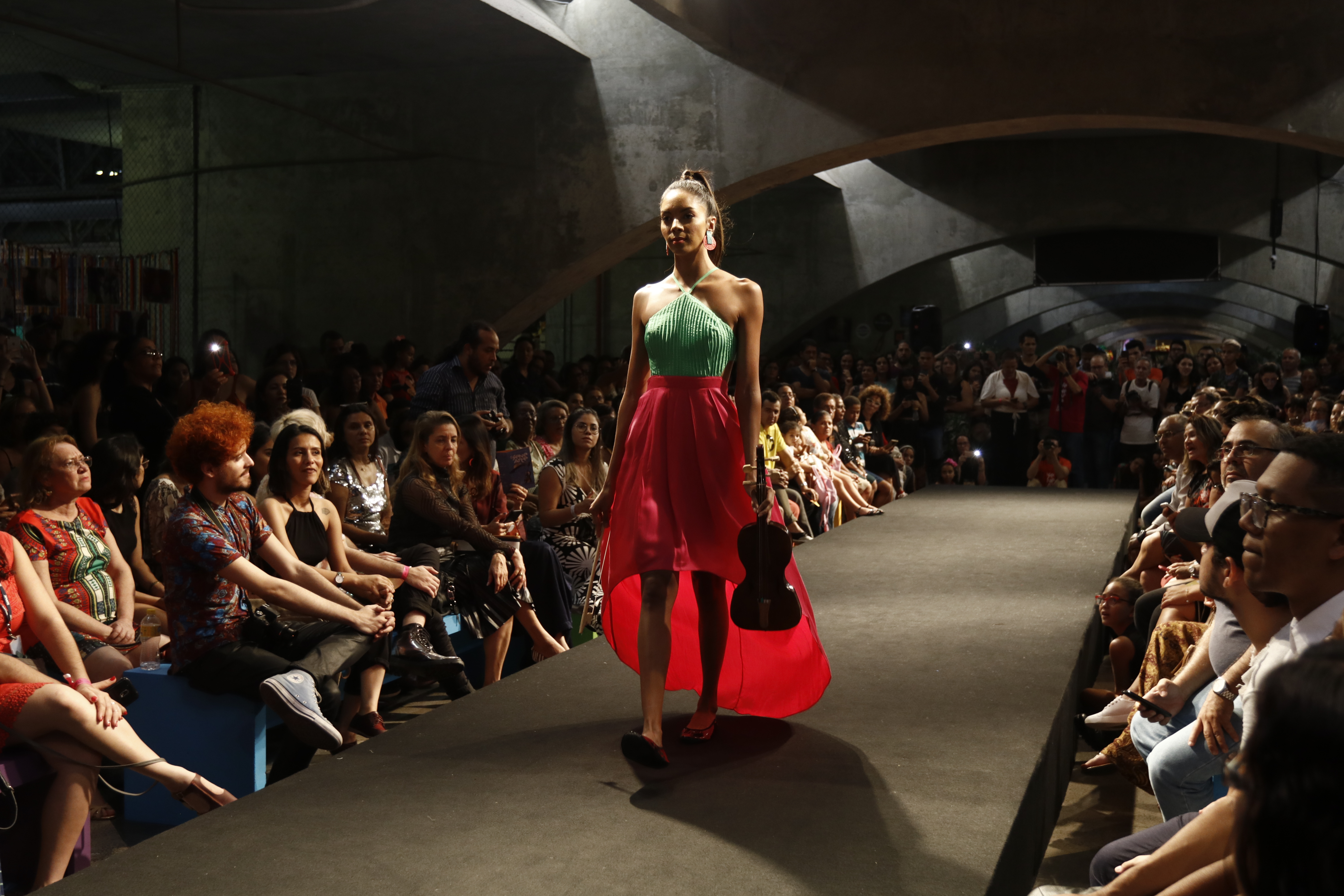 “Cavalo Marinho do Mestre Salu – Alegórico, sonoro, misturado, brilhante” foi o tema da coleção dos estudantes de Caruaru. Maria França, aluna do primeiro módulo do curso de Design de Moda da unidade vinculada, também ficou emocionada ao ver sua peça virar realidade. Antes do desfile, ela era só ansiedade, mas, depois, só alegria: “deu certo, foi lindo, foi mara”, disse com um sorriso largo.